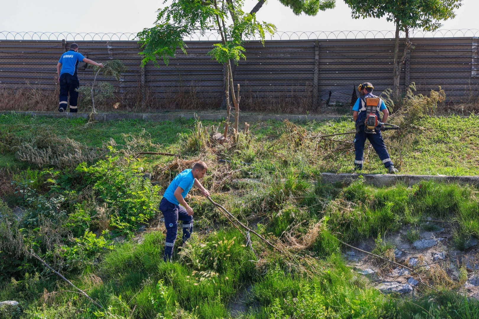 SAKARYA (İGFA) - Sakarya Büyükşehir Belediyesi Su ve Kanalizasyon İdaresi (SASKİ), Çark Deresi kenarında ve içerisinde temizlik çalışması gerçekleştirdi. Bir yandan dere kenarında uzayan yabani otlar biçilirken diğer yandan ise dere içine atılan atık maddeler toplandı.